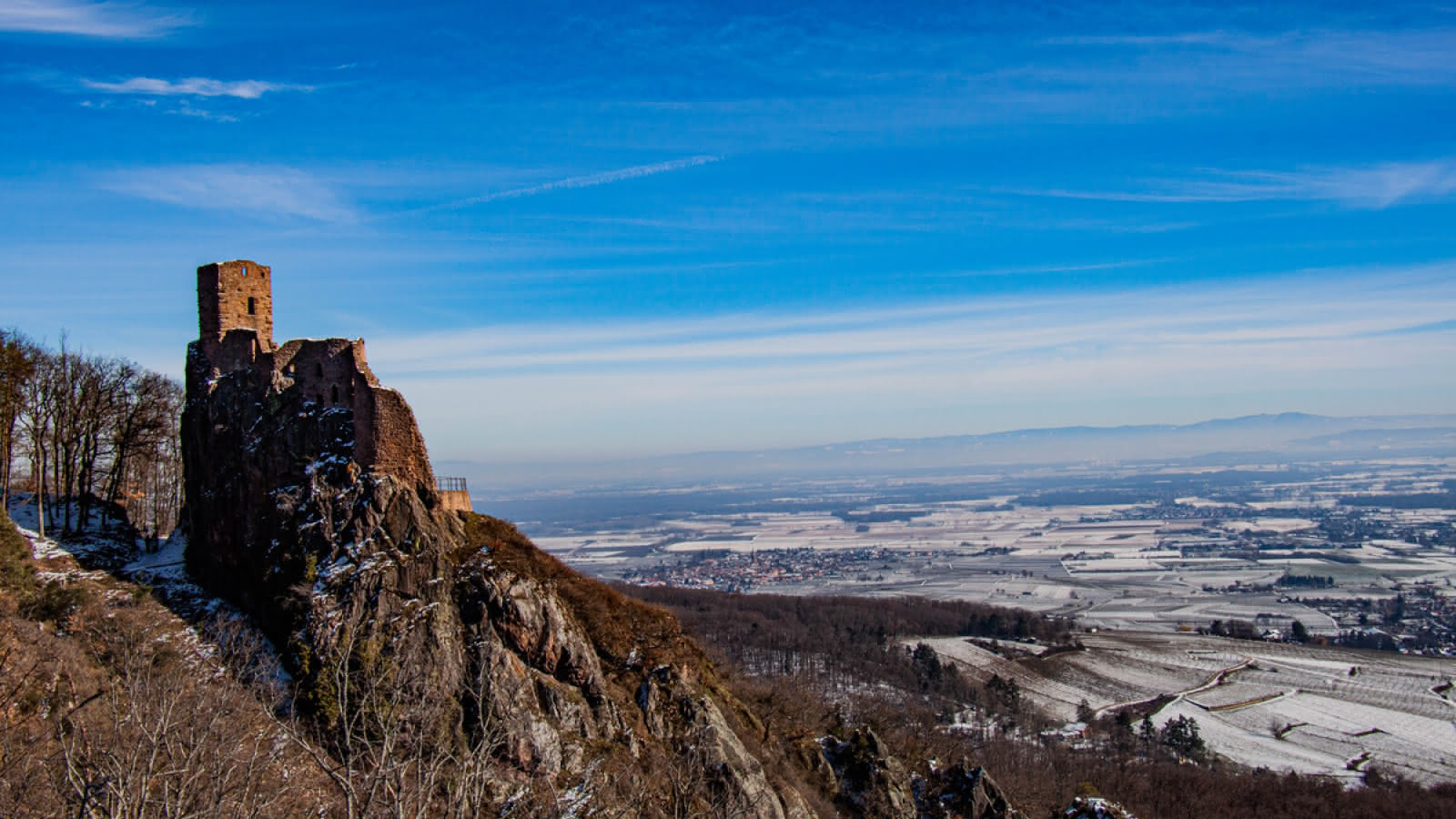 Telles des sentinelles de pierre perchées le long de la crête vosgienne, des dizaines de châteaux veillent sur la plaine du nord au sud de l'Alsace.